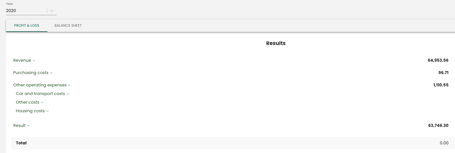 If you work in The Bookie Webapp, you can always find the provisional profit and loss account in the left column under Reports. Here you can choose your overview per year at the top.
